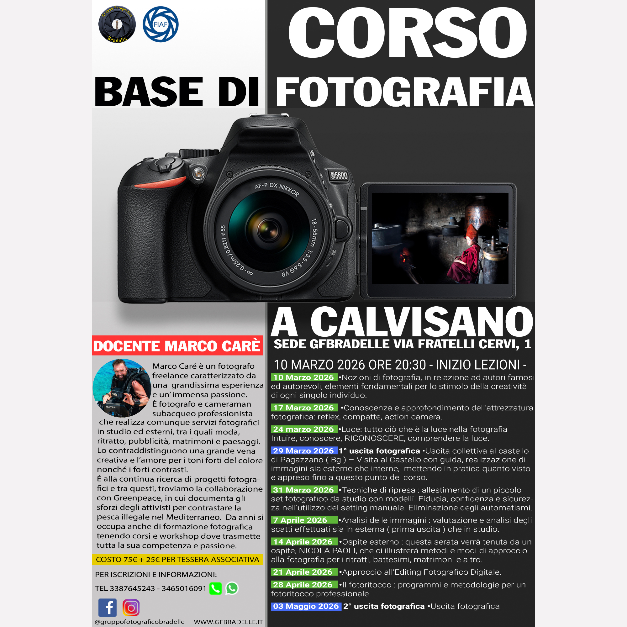 Corso di fotografia 2026 dal 10 Marzo Riparte anche quest'anno il consueto corso aperto a chiunque voglia avvicinarsi alla fotografia.